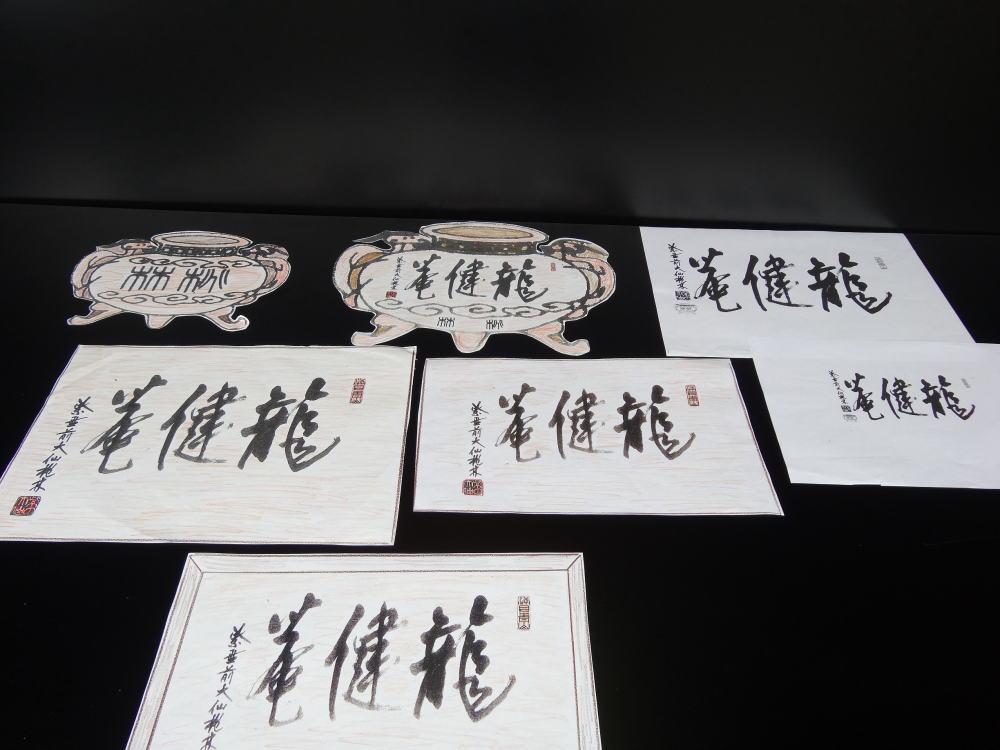 持ち帰って揮毫の内容や意味を読み取ります。内容のむずかしい場合は書家や