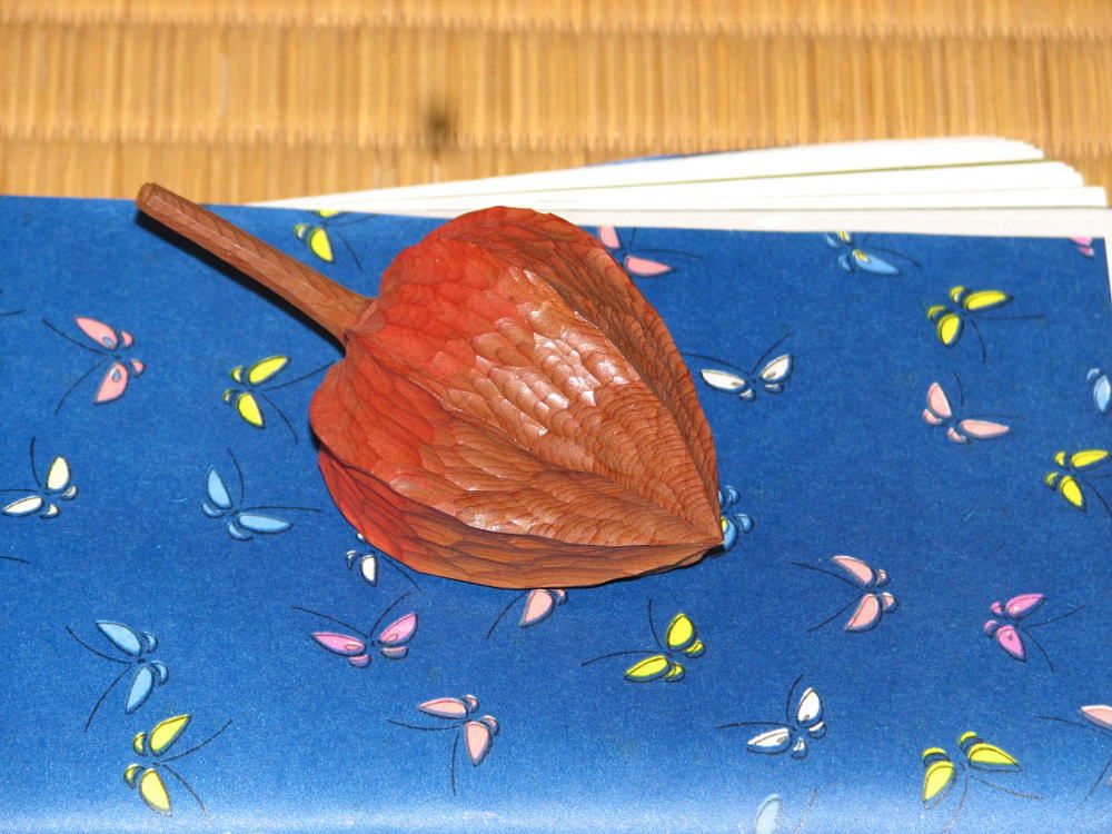 香合はほおずき(一位材の彫物)・紙敷は「蝶」が舞っている柄の取り合わせです。