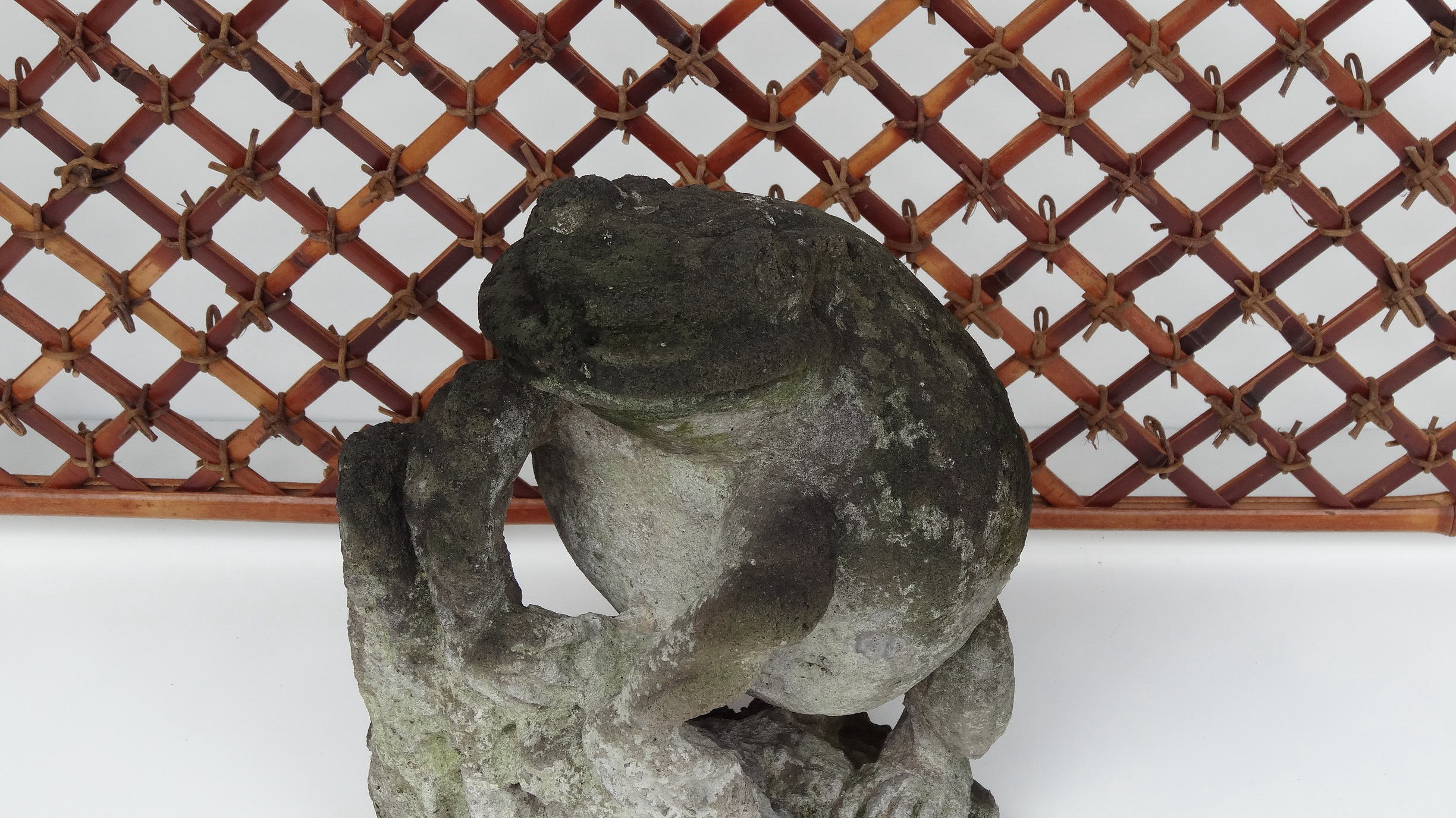 直置きしますとカエル全体が苔むして、カエルのお腹が白く見えずコントラストが付かなくなります。