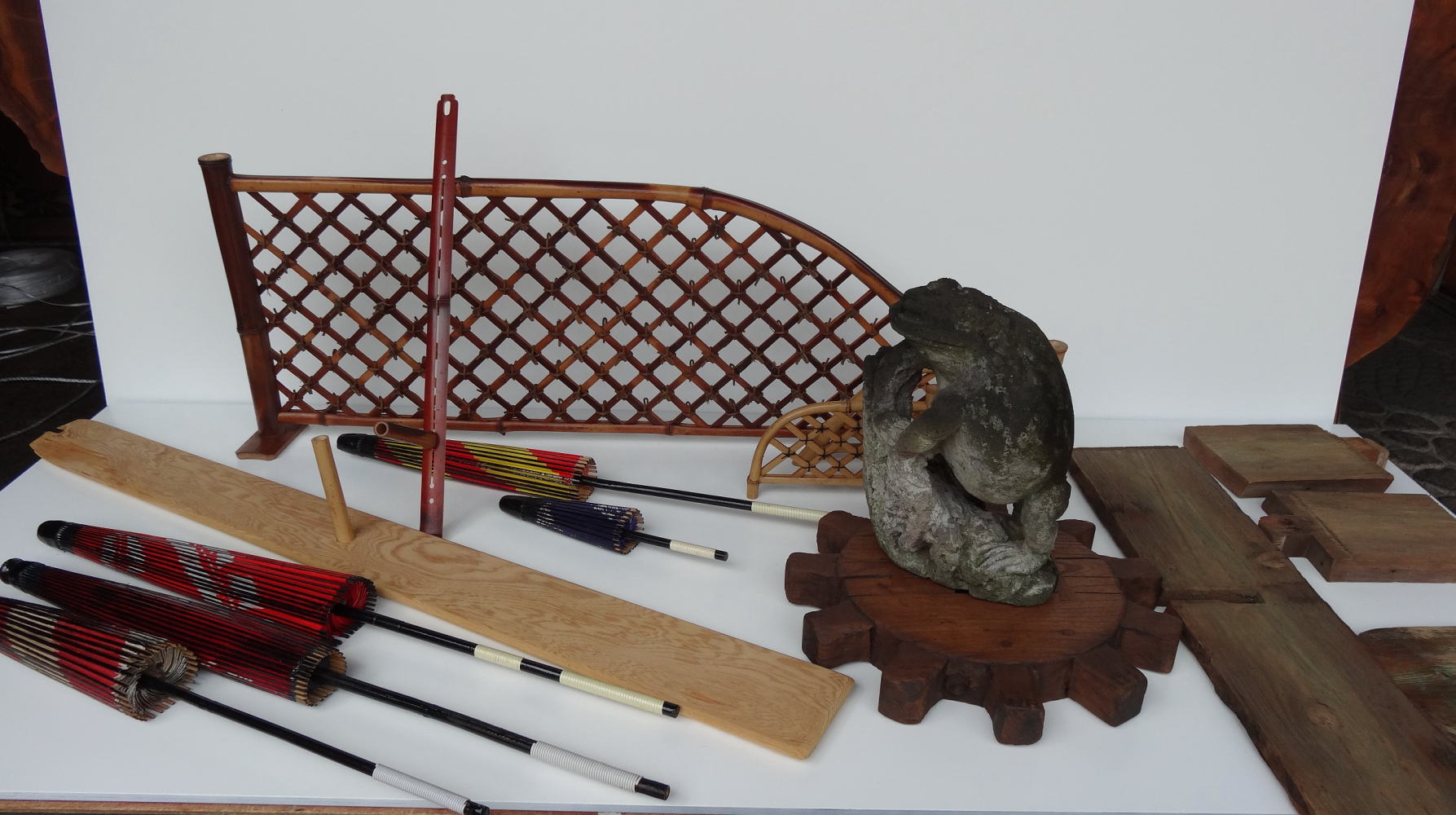 バランスの「間(ま)」がとれません。1本の傘を開いて正面に据えるのに苦労しました。