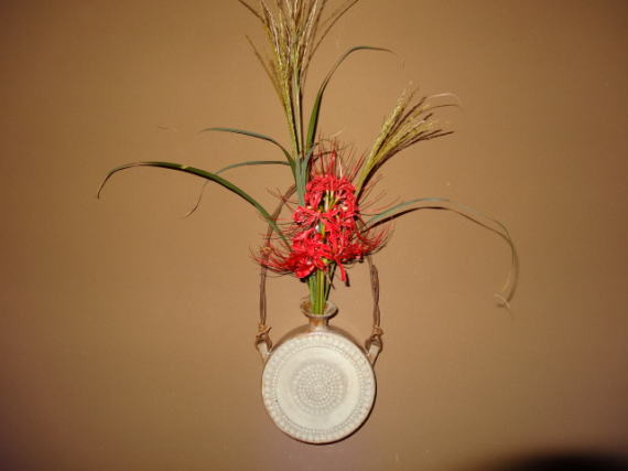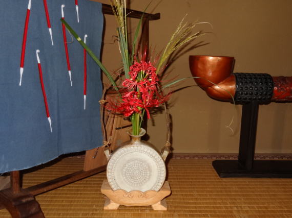 もの悲しさがあります。今年は夏が長い分自然や正直でこの床飾りをする頃にはようやくススキの穂が