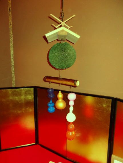 煤竹下に大小本物の瓢箪に六色の色掛けをして人の五臓(肺・心・肝・脾・腎)・陰陽五色を表し命(六腑)と