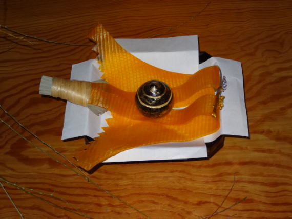 遠山薹:熨斗飾り・押へ黒楽焼宝珠形
