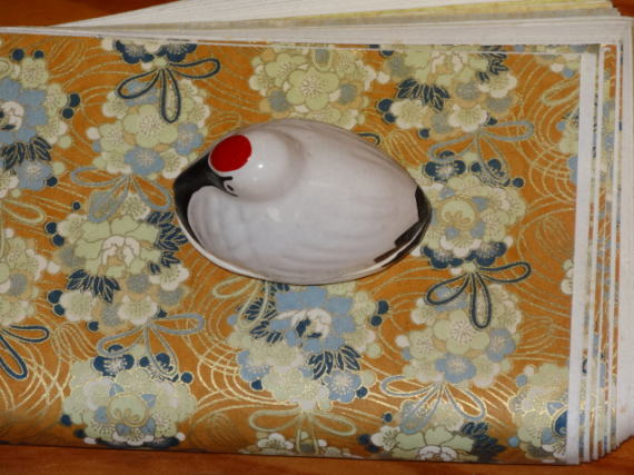 紙敷、香合:唐花結び・鶴香合 題字長楽萬年