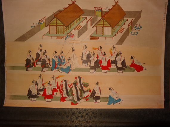 天皇一代の大祭即位の儀礼大嘗祭(だいじょうさい)≠フ絵巻絵です。