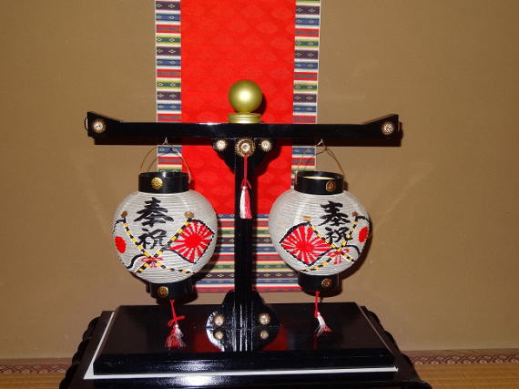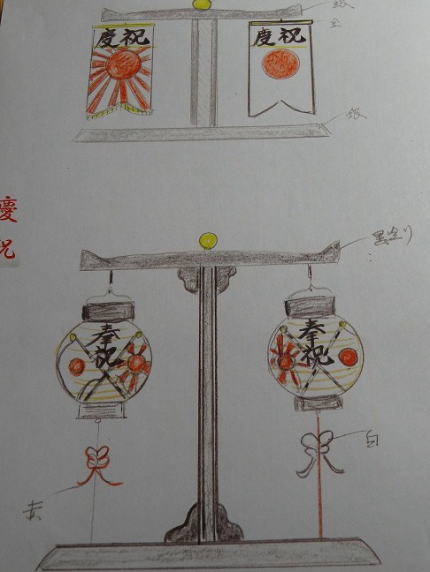 御誕生と数々の慶祝時に用いました。国旗の入った提灯を作製する時、身近に職人さんが少なくなっていて