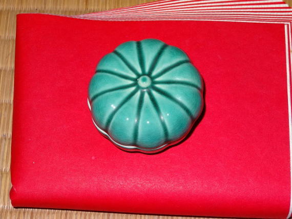 紅白紙敷・緑釉菊香合