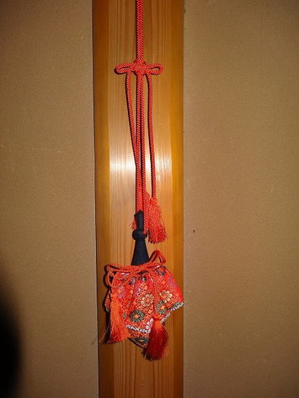 茶席の邪気を祓う香袋∵d梨勒(かりろく)柱飾り