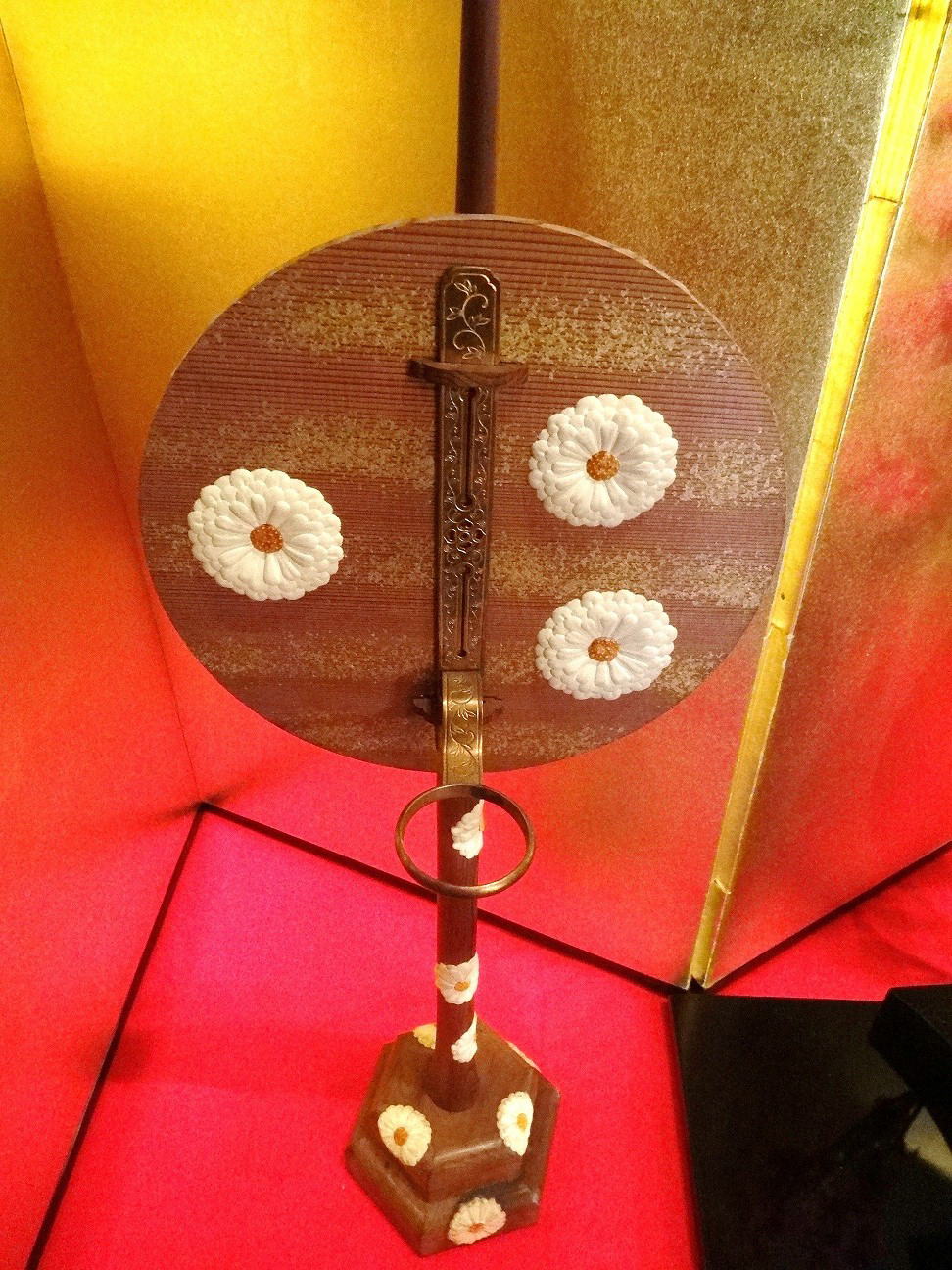 の楽器を置き左に琴≠飾っています。左右に源氏燈台を一対置き、針・糸の上達も願い化粧裁縫箱も添えて
