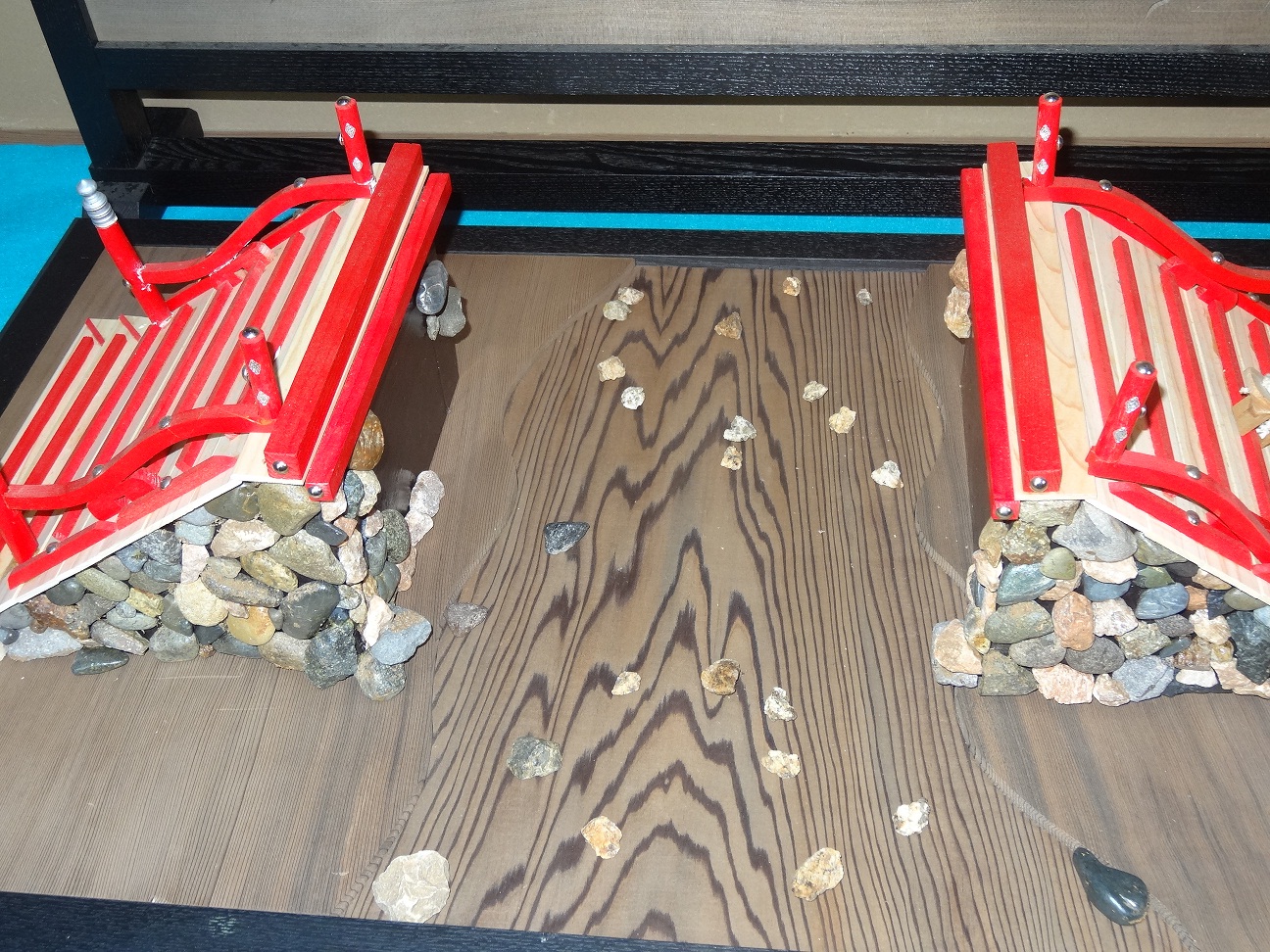 セットし橋桁を置き、最後に戦いの場面の人形を乗せた太鼓橋を乗せて完成です。