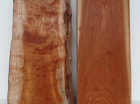 45〜50p丸の原木がたまに出るくらいです。大きな木には縮緬杢(ちぢみ)・漣杢(リップマーク)があり