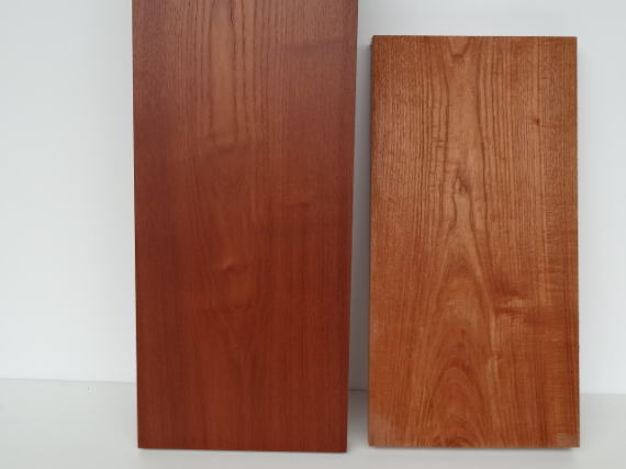 二枚は同じケンポナシですが、左は桑色付け(クロム酸)を施しています。