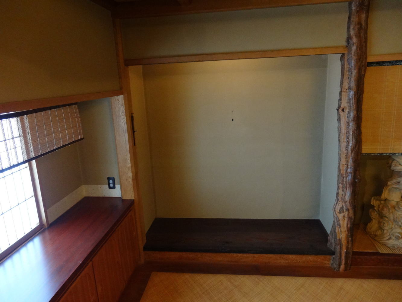 この部屋は鎌倉五山古刹建長寺の梁名栗の古材が主として天井面を占めています。これに伴うように