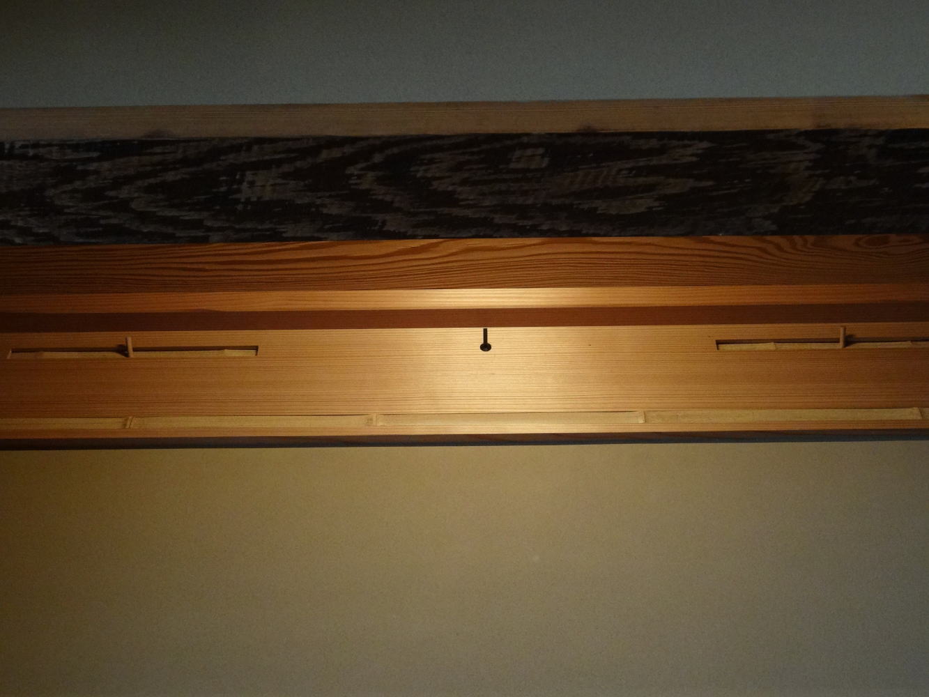 落掛けは春日大社の杉材で雑誌サライで有名な木挽、林以一氏が大鋸(おが)で手挽した材を使用し、