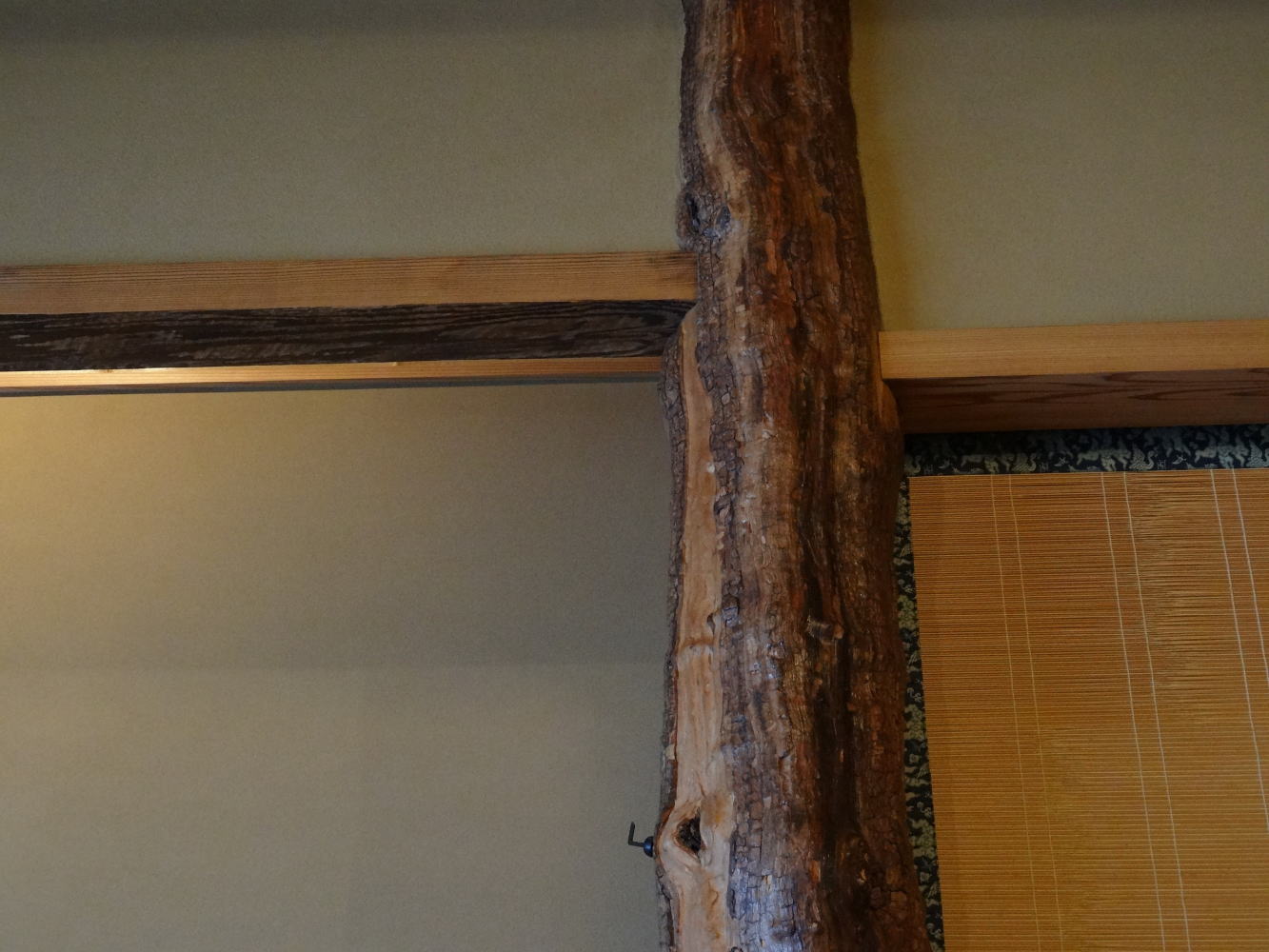 床柱は紅梅(立枯れ材)を使っています。白梅は平安時代よりありますが、紅梅が日本に伝わったのは