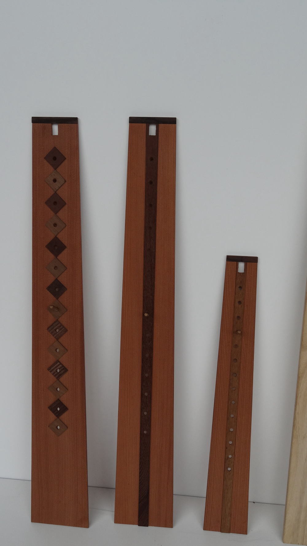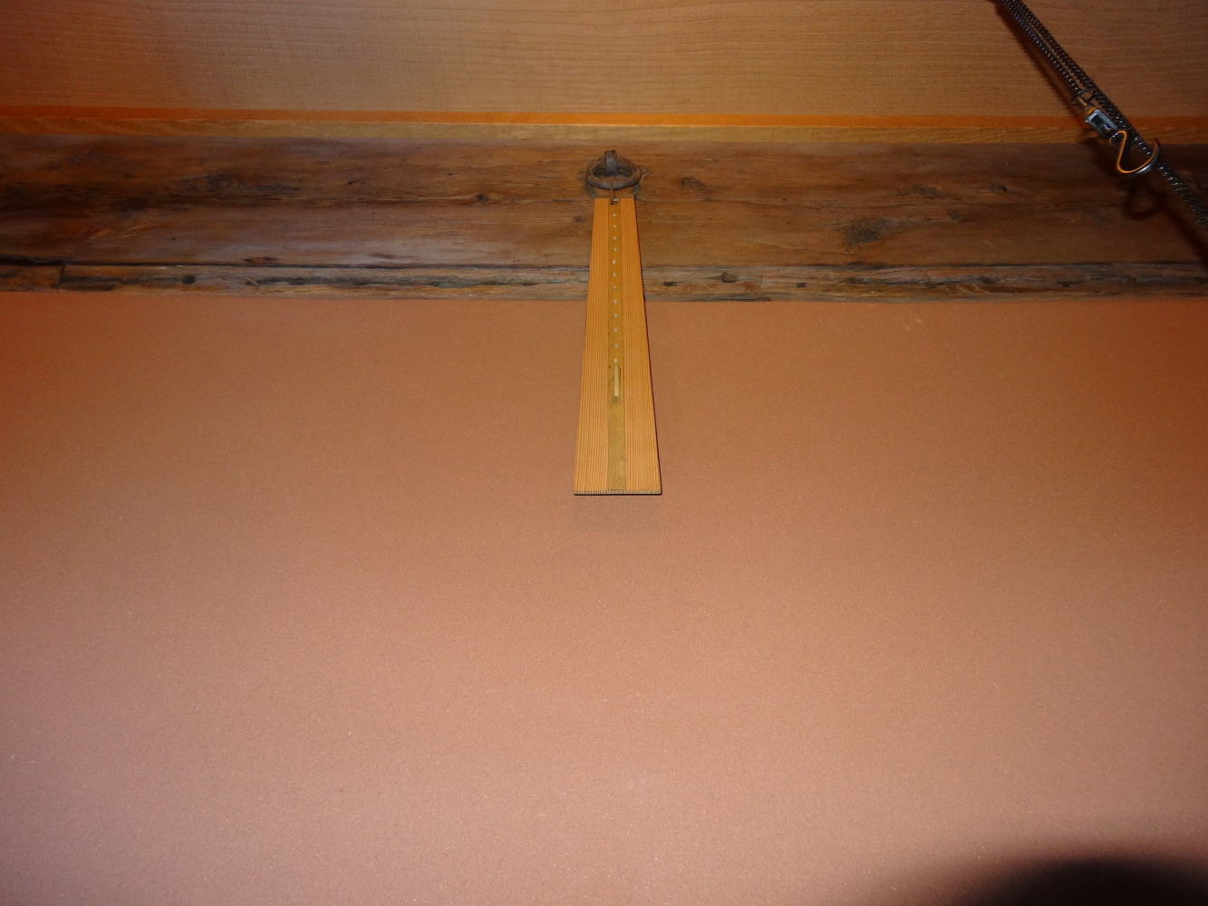 ここに紹介するのは床に御軸を掛ける自在板です。形は撥(ばち)型を基本に軸の長さにより竹釘で