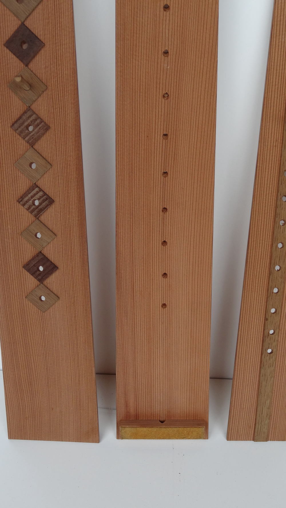この垂撥板は各80gの重さで軽く出来ていて杉板の裏に「鹿皮」が貼っており軸の横ズレが無く、