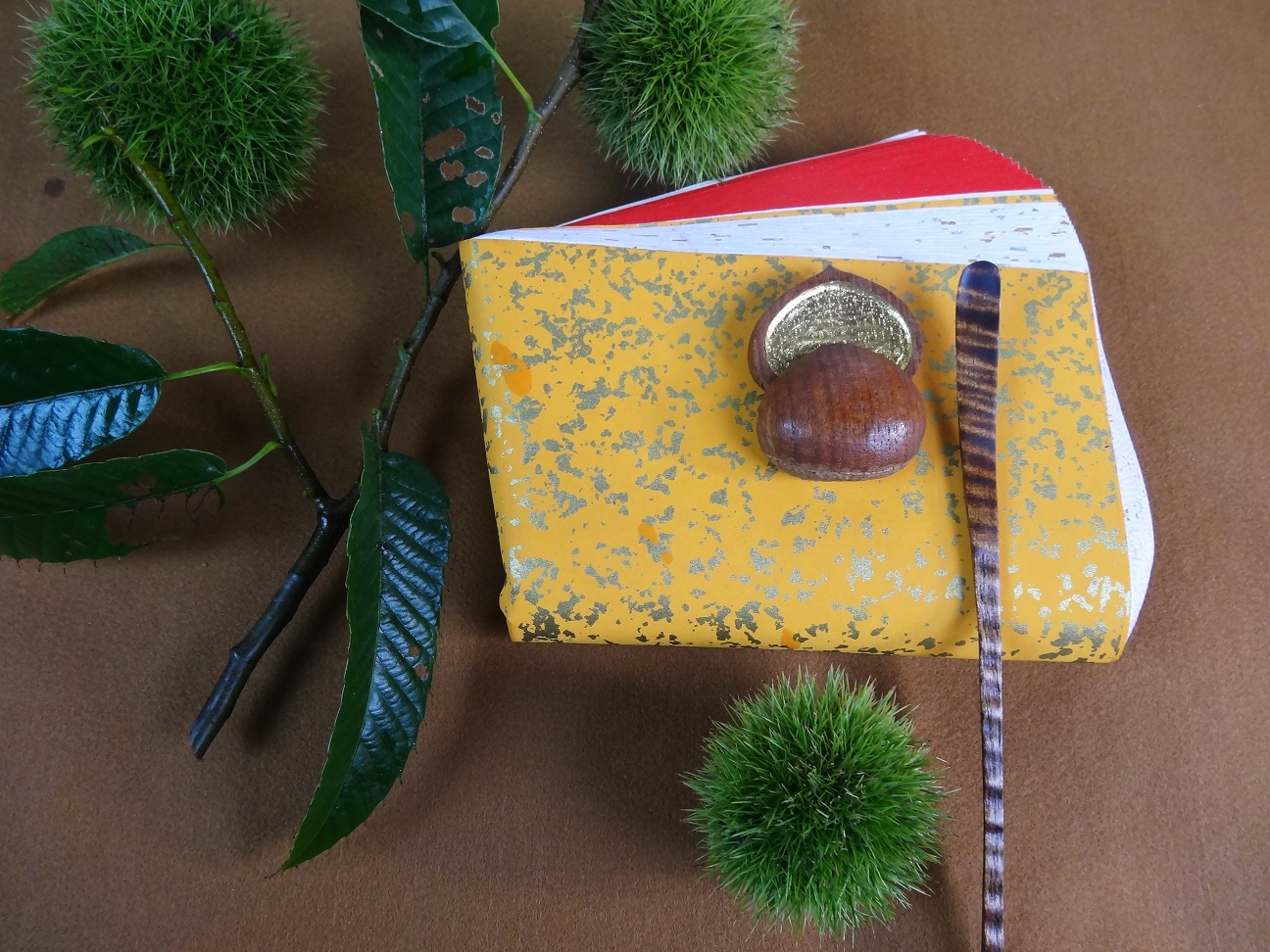 道具は炉縁材を始め、多く作品に見られます。10月栗と言うと、遅いと感じる方もいると思います。