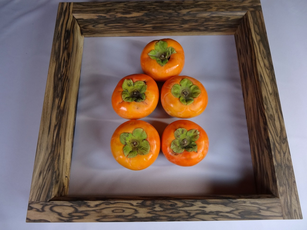 参考に杢目を並べ比べた炉縁作品の黒柿杢目は今日なかなか得難い柿の木≠ナ