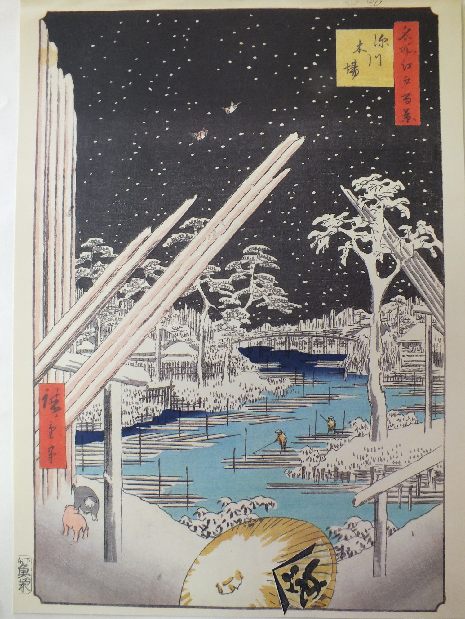 木場に初雪が降ると江戸っ子の「初物好き」と重なり丸太の暮雪を愛でる一大名所で西岸の商家の旦那衆や粋人・文化人の多くが